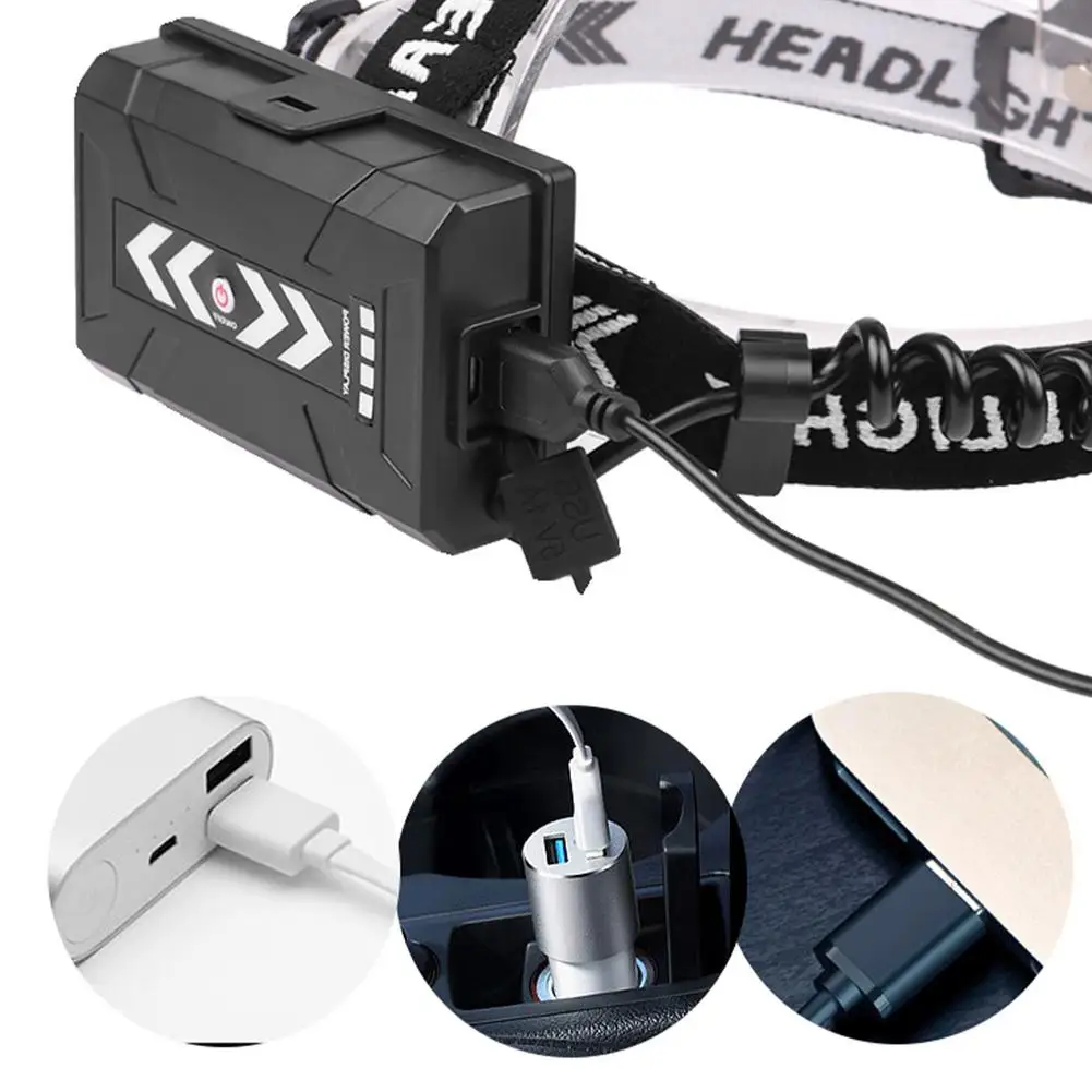 LED Camping Headlamp USB Rechargeable Outdoor Hunting Hiking Fishing Headlight Torch XHP90 Head Flashlight Torch Lamps