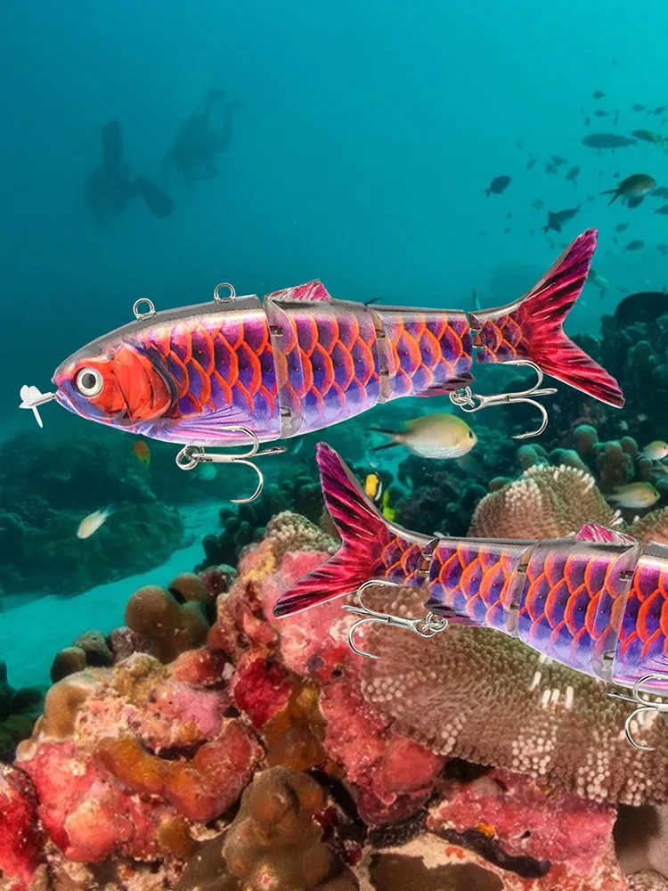 1. Exclusive Design: This robotic swimming fishing lure adopts the multi-segment design, and the flexible body makes the fishing lure more realistic. Different segments of the main body of the lure are connected by metal materials, so this fishing lure can withstand strong bites. Unlike ordinary lures, our bait is easier to connect.