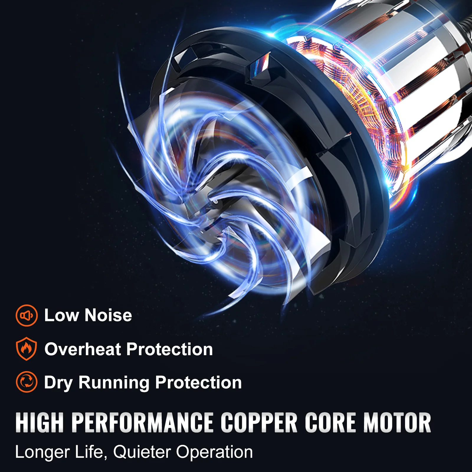 【High-Performance Motor】: The pure copper motor features four core technologies: dry running protection, overheat protection, interval work cycle, and low noise. With high-quality motor rotor and high-precision bearings to maintain powerful performance and aluminum alloy casing to ensure long service life.